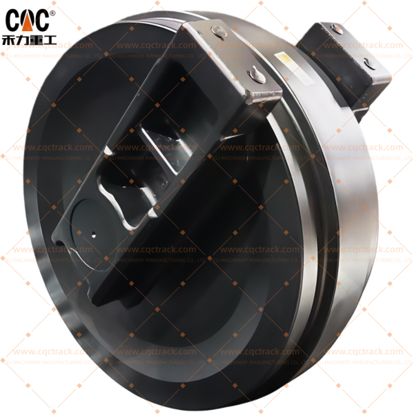 This is a high-quality, cost-effective aftermarket Front Idler Assembly manufactured by CQCTRACK as a direct replacement for the genuine Caterpillar part used on large E-Series excavators. It is a complete, bolt-on assembly designed to save on cost and installation time compared to an OEM part.
