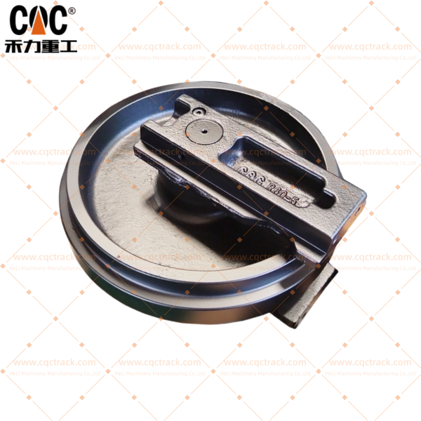 A front idler (also called a guide wheel or track idler) guides the track chain, maintains proper track tension in conjunction with the track adjuster assembly, supports the front portion of the machine’s weight, and absorbs shock loads from uneven terrain. The guide wheel is used to guide the track to rotate correctly to prevent its deviation and derailment.