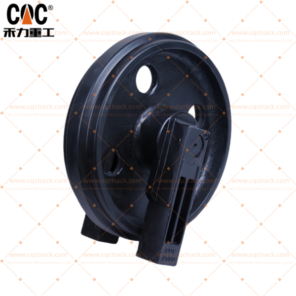 A front idler assembly—technically designated as a track idler, guide wheel, idler group, or front idler wheel—is a critical passive undercarriage component mounted at the front of the excavator‘s track frame, opposite the rear-mounted drive sprocket. Unlike the drive sprocket, which is an active component that propels the machine, the front idler is a passive component that rotates freely around a stationary shaft as the track chain moves. However, its functional importance within the mini excavator chassis equals or exceeds that of the drive sprocket for several reasons:
