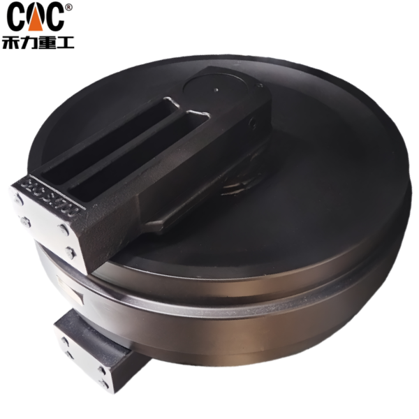- Track Tension Adjustment: The idler is mounted on a sliding or adjustable bracket connected to a hydraulic or screw-type tensioning mechanism. This allows operators to apply precise forward force to the track chain, maintaining optimal tension—critical for preventing excessive slap, reducing wear, and ensuring efficient power transfer.