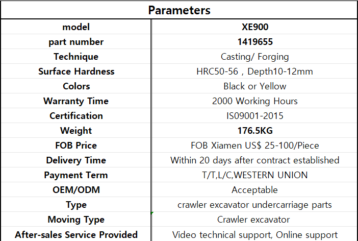 model Caterpillar-E6015B part number 430-4192 Technique Casting Surface Hardness HRC52-58,Depth10-12mm Colors Black Warranty Time 4000 Working Hours Certification IS09001 Weight 296KG FOB Price FOB Xiamen port US$ 25-100/Piece Delivery Time Within 20 days after contract established Payment Term T/T,L/C,WESTERN UNION OEM/ODM Acceptable Type crawler excavator undercarriage parts Moving Type Crawler excavator After-sales Service Provided Video technical support, Online support -