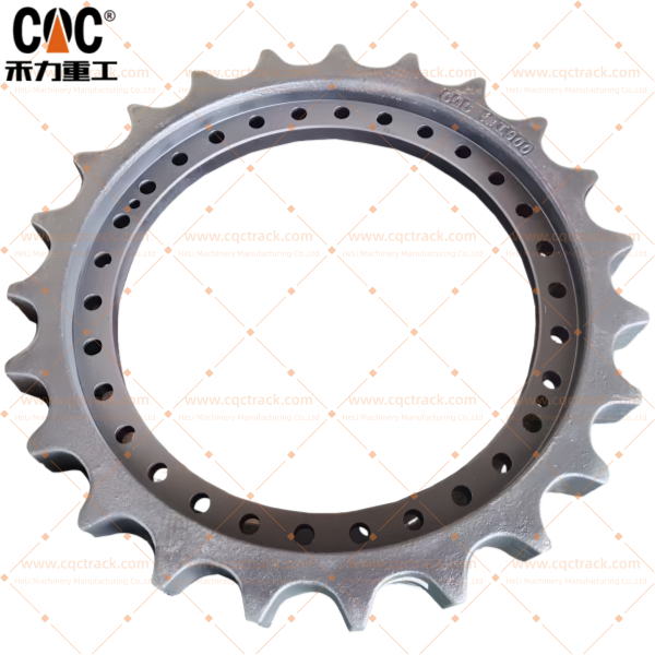 The track drive sprocket, also referred to as the final drive sprocket, sprocket rim, or drive wheel, is the final and most highly stressed component in an excavator‘s power transmission chain. Unlike idlers or rollers that guide or support the track chain, the drive sprocket is the active interface that converts rotational torque into linear motion, propelling the entire machine across mining sites and construction terrains. Positioned at the rear of the undercarriage and bolted directly to the final drive output flange, the sprocket engages with the track chain bushings, transmitting the immense torque generated by the excavator’s hydraulic system into tractive effort.